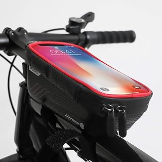 MYSBIKER Support Téléphone Vélo Etanche, Support Etui Smartphone Moto Imperméable, Sac de Cadre de Vélo Housse de Téléphone Rotatif avec Ecran Tactile Pare-Soleil pour Guidon de Vélo VTT Scooter