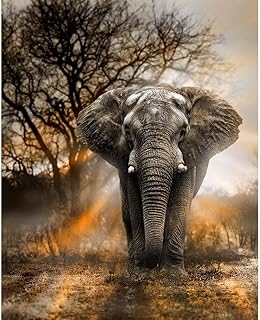 Blxecky DIY 5D Diamant Peinture Point De Croix Broderie Diamond Painting Kits Salon Chambre Décoration Autocollant mural,Elephant(35X43CM/14X17pouces)