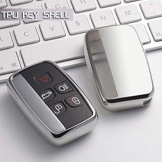 Heart Horse Coque de clé de voiture pour Land Rover Jaguar-5 boutons en silicone TPU souple Protection de clé Land Rover Evoque Dhell Jaguar Aurora XEL XFL F-pace Key Set (Argent)
