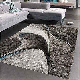UN AMOUR DE TAPIS 240x340 Grand Tapis Salon et Salle a Manger - Tapis Salon Moderne Design Poils Ras - Tapis Chambre Turquoise - Tapis Bleu Gris Noir