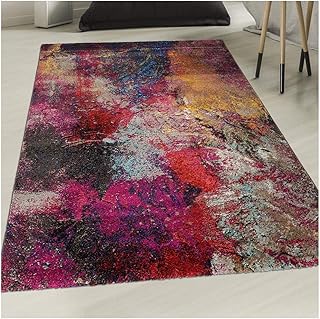 UN AMOUR DE TAPIS 160x230 Tapis Salon Moderne Design Poils Ras - Grand Tapis Salon Turquoise Rectangulaire - Tapis Multicolore Rouge Bleu Gris Noir Violet Rose
