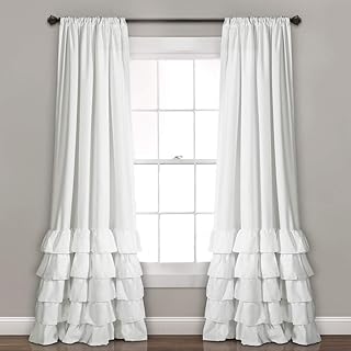Lush Decor, Allison Paire de Rideaux à Volants pour Salon, Salle à Manger, Chambre à Coucher Blanc 241,3 x 101,6 cm, 241,3 cm
