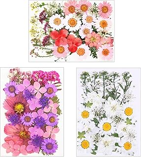 Daimay 24 PCS Fleurs séchées Naturelles Mixte Multiple Vraies Fleurs pressées Assortiment coloré pour Bijoux en résine Bricolage Décors Floraux Nail Art - 3 Styles