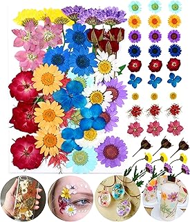 Kalolary 47 pièces Fleurs pressées séchées, mélangées Fleurs pressées Naturelles Feuilles pétales pour Bricolage Bijoux en résine Maquillage Nail Art décors Floraux Bougie Artisanat décor Floral