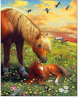 GIEAAO 5D Diamond Painting Complet Cheval, Broderie Peinture Diamant Painting Animal, Canevas Diamant kit Complet Point De Croix Broderie Salon Chambre Autocollant Mural Décoration 35x35 cm