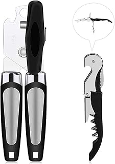 CHUER Ouvre-Boîtes Manuel en Acier Inoxydable, Lame en Acier au Carbone pour la Sécurité - Bord Lisse Ouvre-Bouteille Robuste 3 en 1 pour Cuisine, Restaurant de Camping + 1 Ouvre-Bouteille de Vin